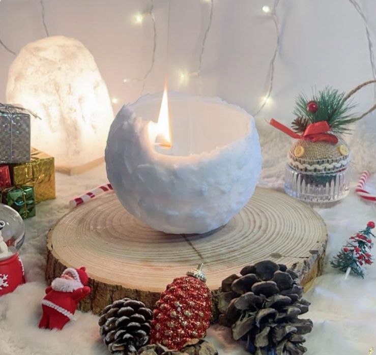 Die Kerze schmilzt in einer spiralartigen Form und enthüllt die Wachskugel mit einem sanften Duft.